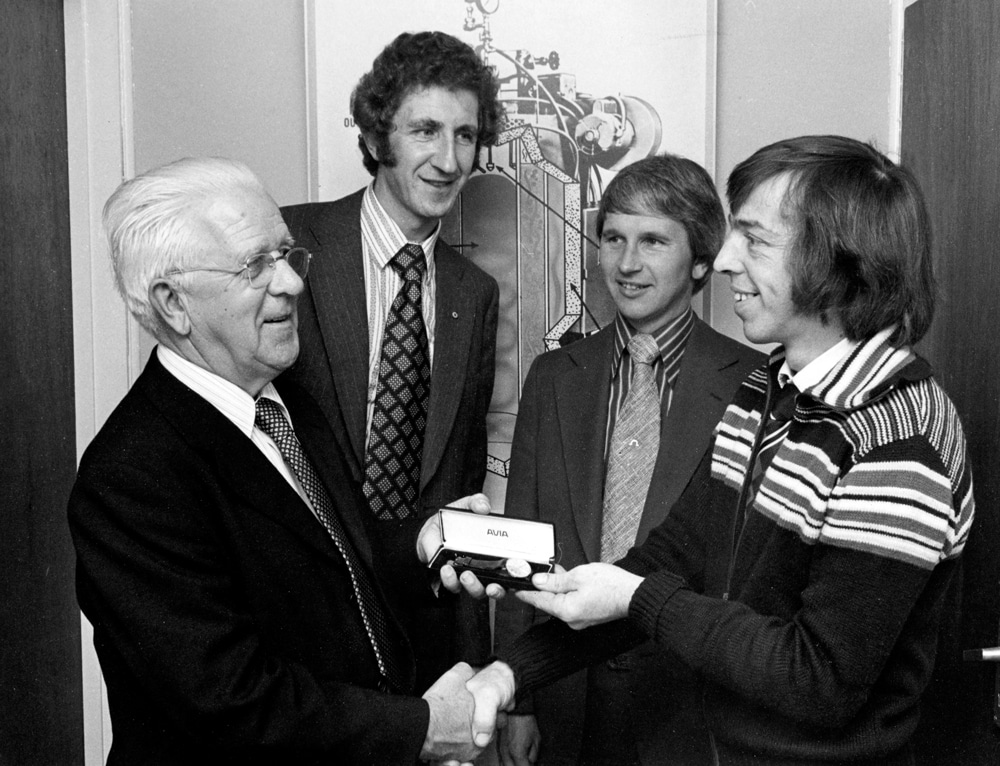 Fulton was founded by Lewis Palm, a pioneer in the engineering of steam equipment for the laundry and dry-cleaning markets. One afternoon in 1947, when Lewis was managing the Sunlight Laundry of Fulton, NY, the plant’s steam boiler failed. This event inspired him to reimagine the boiler’s design: he had the idea to vertically orient the boiler, creating a smaller footprint and modifying the design to make it more reliable. Lewis invented the Vertical Tubeless Boiler in a small garage next to his home, and upon the receipt of his first sale, he tied the boiler to the trunk of his car and drove it hundreds of miles from New York to Michigan.