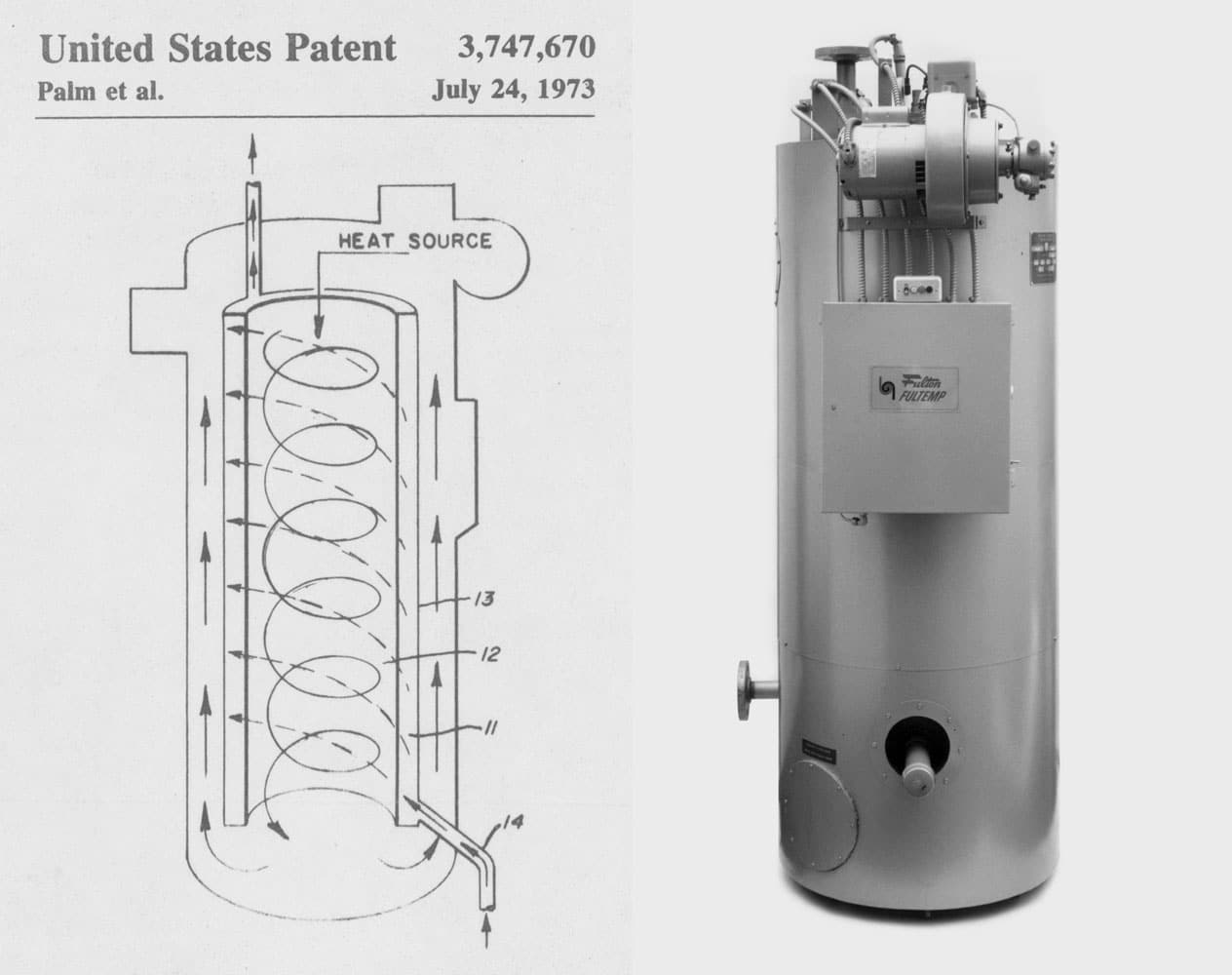 Lewis Palm invents the Vertical Tubeless Boiler and builds the first one in his garage using scrap metal from a local scrapyard. Shortly thereafter, in 1949, Fulton Boiler Works was formed.