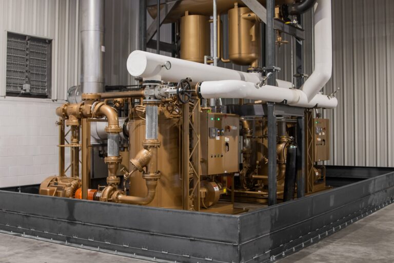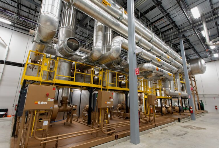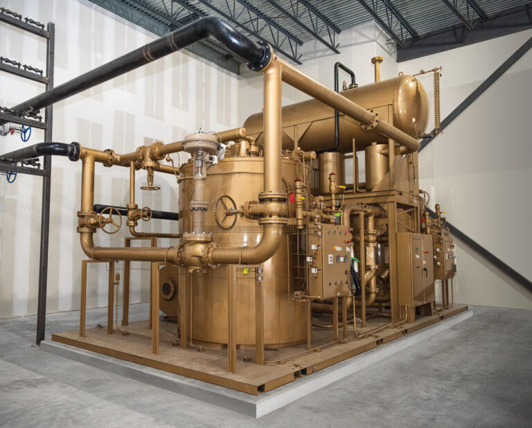 Fulton’s C-Model vertical coil design thermal fluid (hot oil) heater provides a compact, fuel-fired, 4-pass heater design capable of reaching temperatures up to 750°F (400°C). Heater sizes range from 800,000 BTU/hr to 14 Million BTU/hr output, and they can be combined in modular engineered systems to accommodate applications of any size. Fulton heaters are engineered for durability and maintain low thermal fluid film temperatures, ensuring long-lasting system performance.