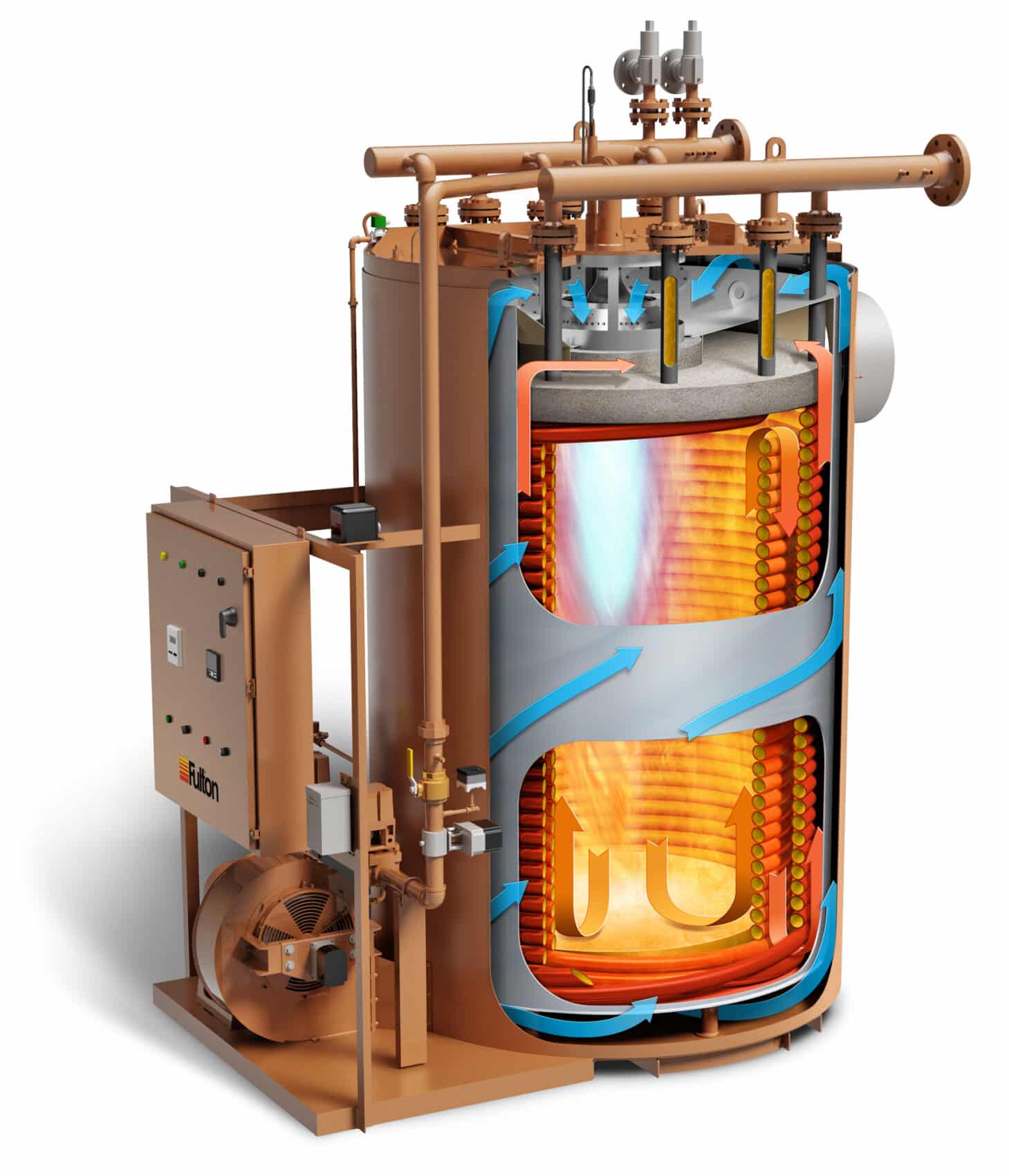 Fulton’s C-Model thermal fluid heater is designed and built to rigorous standards, providing the lowest total cost of ownership. A heavy-wall double coil design guarantees unparalleled coil life and operating efficiency in all applications.