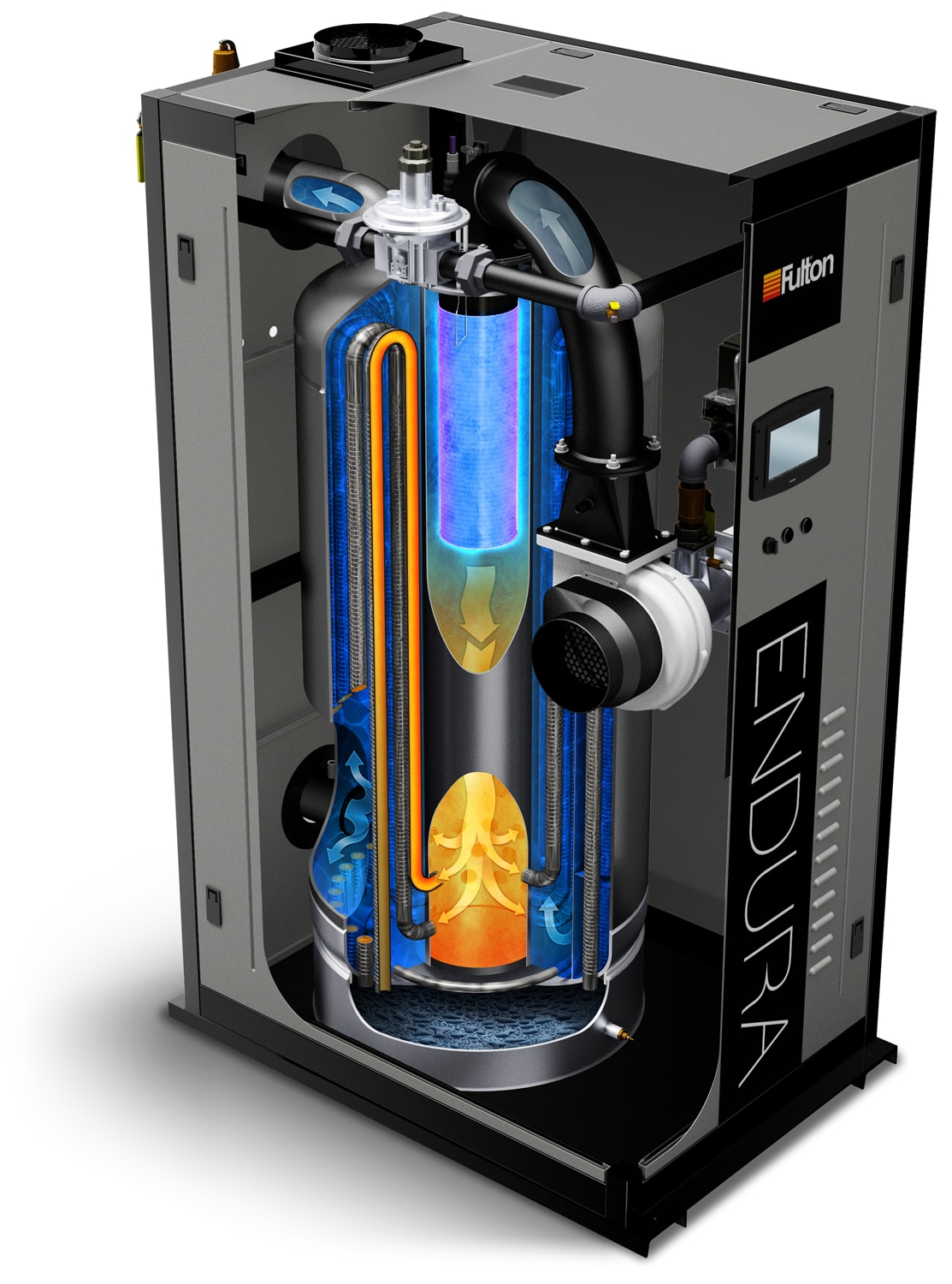 ENDURA boilers are built on a proven heat exchanger platform engineered and manufactured by Fulton. The design features rugged welded construction and a high-mass pressure vessel.