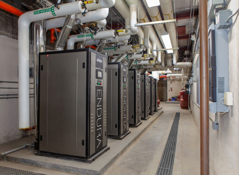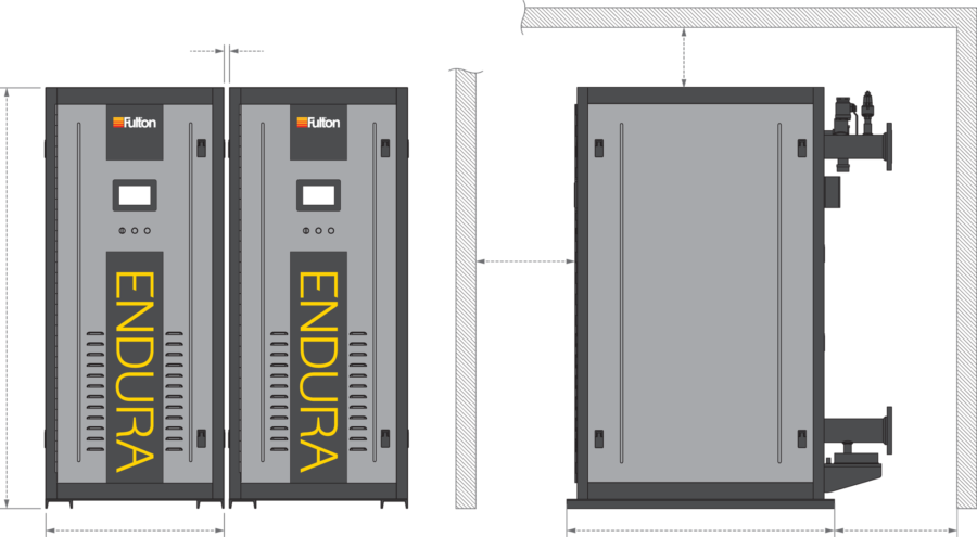 ENDURA boilers provide simple accessibility for commissioning and maintenance with latched cabinet panels and hand-wired electrical panels with terminal blocks. Key components are located strategically to facilitate a one-inch side clearance between multiple boilers.